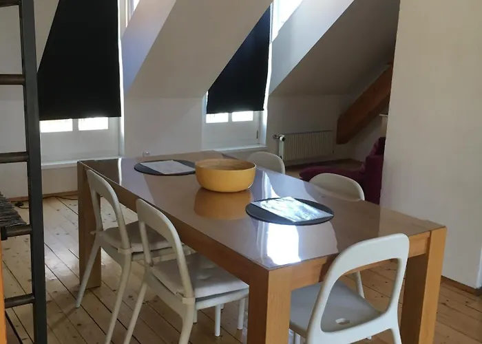 - ❓Hoe ver is Dachgeschosswohnung Mit 2 Schlafzimmern appartement van het stadscentrum?Het stadscentrum ligt op 5 minuten lopen van Dachgeschosswohnung Mit 2 Schlafzimmern appartement.